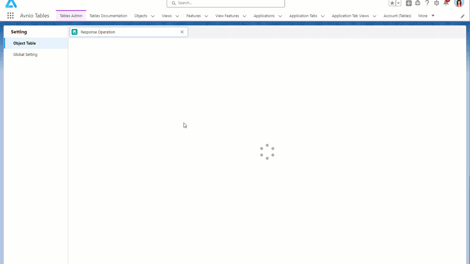A new Response Operation Record (Avnio Tables > Object Table > Response Operation) is created with the Operation Status as Pending.