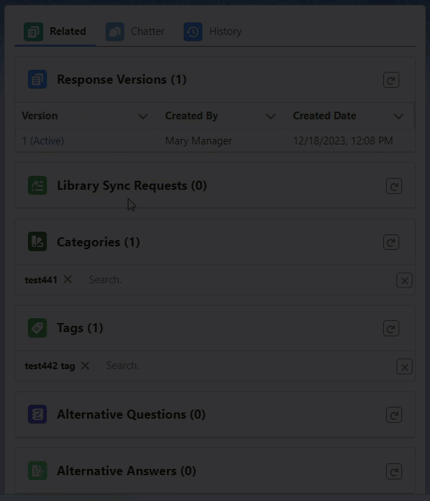 When you try to add/update a Category or Tag that already exists in the Response record, the system prevents you from adding and displays the message “The Category is already added” or “The Tag is already added.”