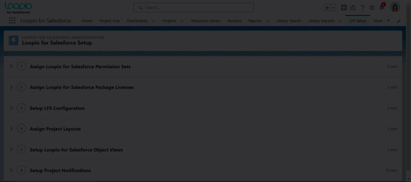 Click the bell icon to see the Salesforce Lightning notification for the project. You can also click on the notification to navigate to the Request approval page. Contact your Loopio Support Representative for any customization in the Notification Template.
